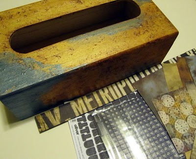 4. Escogemos un último color que nos guste. Este no lo aplicamos por toda la caja, si no que le vamos dando en varios lugares "al tun tun" hasta que nos agrade el resultado. En mi caja, como tiene un toque envejecido, lo he puesto en esquinas y lo he difuminado un poco.