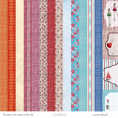 Recordo aquesta colecció a la parada de Creativa 2009 a Scraphouse, quan l'Antonio el marit de la Roser hem va presentar a tu i hem va dir " ella es la Marisa Bernal, la disenyadora d'aquets papers", quan els vaig veure hem van encantar, sobretot els dels cors i els quadrets.